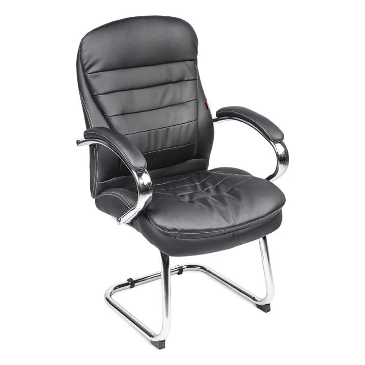 Большое посадочное место (ширина 68см, глубина 65 см) создает все условия для удобного расположения пользователя при эксплуатации. Эргономика модели по конструкции близка к изделиям, предназначенным для высшего звена управленцев, но основанием служат металлические полозья. Выдерживает этот элемент интерьера до 120 кг статической нагрузки, учитывая просторное сиденье, в нем с легкостью сядет и посетитель крупного телосложения.